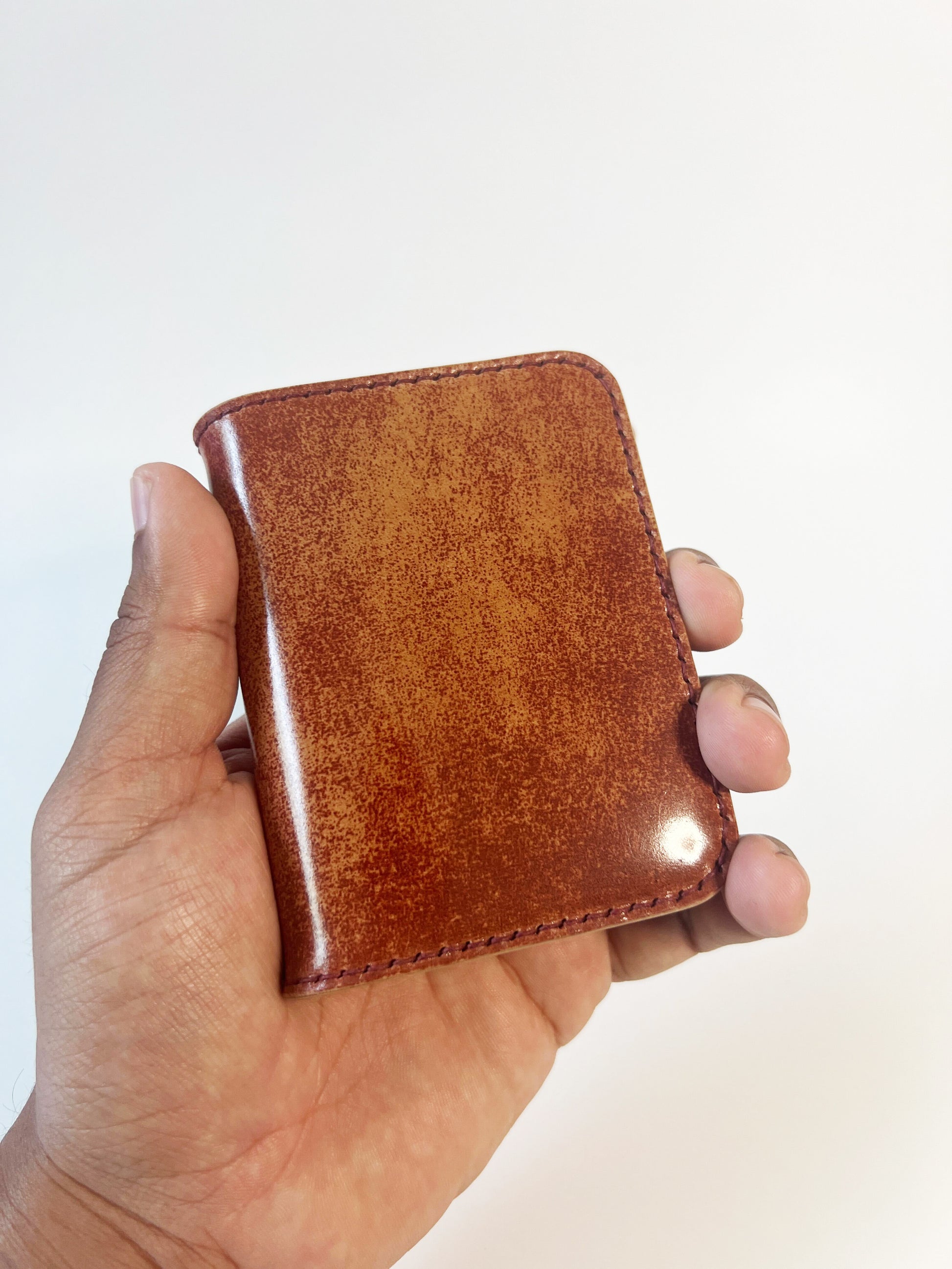 Instead of having the shell side facing forward on the front pockets, you see the flesh side with the official Rocado Shell Cordovan stamp shown off to display its authenticity and to make it feel more like a piece of art than a wallet. The shell has that shiny finish, and there's no doubt that this wallet will stand the test of time and will wear beautifully.